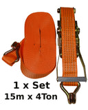 1 x Ratchet Strap set Rated 4 Ton Capacity x 50mm x 15m Heavy Duty Tie Down