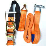 6m Ratchet Strap 50mm with J-Hook and D Shackle ends BF 4 Ton LC 2 Tonne