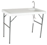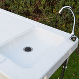 Blow moulded white sink unit/ preparation table with tap, hose pipe connector, sink plug and waste pipe