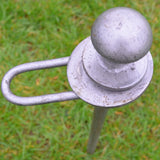 These Marquee Stakes are substantially made from 20mm Forged Steel. They have pressed domed Heads which make it very easy to hammer into the ground. We have fitted a 360 Degree Swivel designed to hold Rope or clips allowing full rotation of the stake without tangling. These pins will secure Boats, Marquees where a rotation is needed and can be particularly useful as Professional Dog Tie-Outs. When removing these stakes a few hammer blows to the side of the head and they can be easily pulled out. Finished in Hammered Paint. These Stakes are virtually unbreakable.