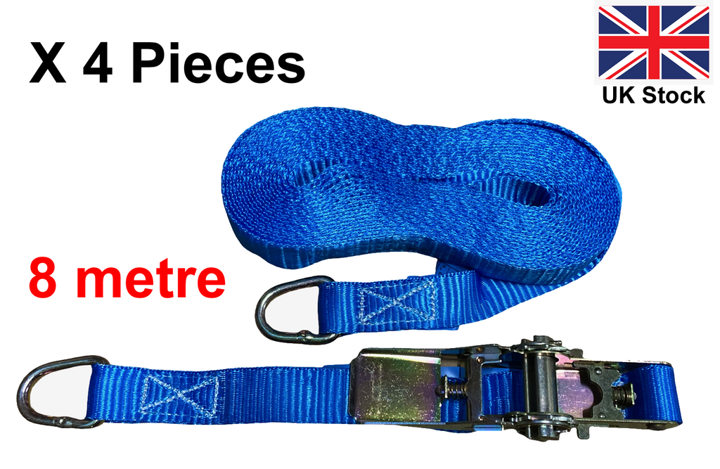 Super Quality 8m Ratchet Straps 800kg 25mm Wide with Delta 'D' Ring En